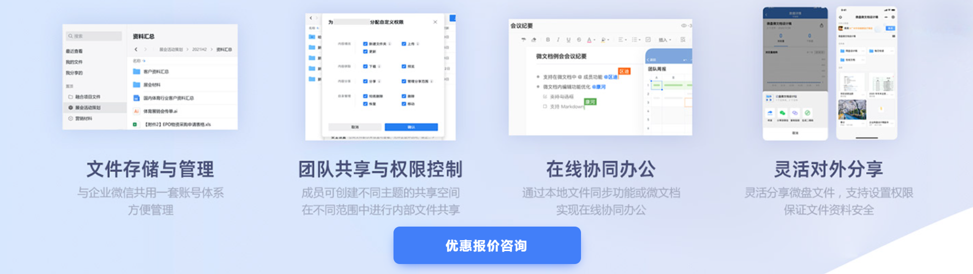 集成在线文档:支持在微盘内创建在线文档,使用文档